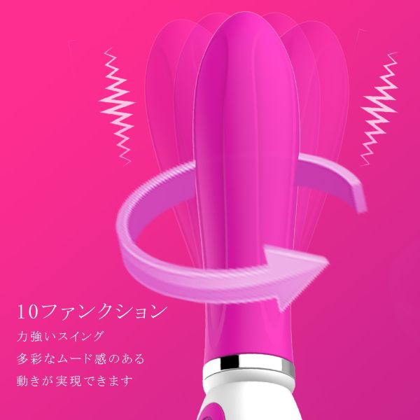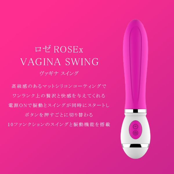 高級感のあるマットシリコンコーティングでワンランク上の贅沢と快感を与えてくれる(ロゼシリーズ)。電源ONで振動とスイングが同時にスタートし、ボタンを押すごとに切り替わる10ファンクションのスイングと振動機能を搭載。使用中は電源ボタン下部が優しく光るので、暗いところでの使用も見失うことはありません。本体には、滑らかな流線形のデザインが施されているのでスムーズな挿入を促してくれます。充電式だからいつでもフルパワーでお使いいただけます。この高級感でスイングと振動機能を両立させたクオリティの高い一本です。