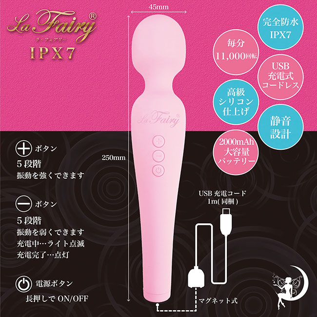 完全防水IPX7取得! 独自開発された高性能モーターをヘッドに搭載し、毎分11000回転の 高性能モーターと5段階の振動調節で、繊細な振動から他に類を見ない 圧倒的なハイパワーまで思いのまま操作いただけます。