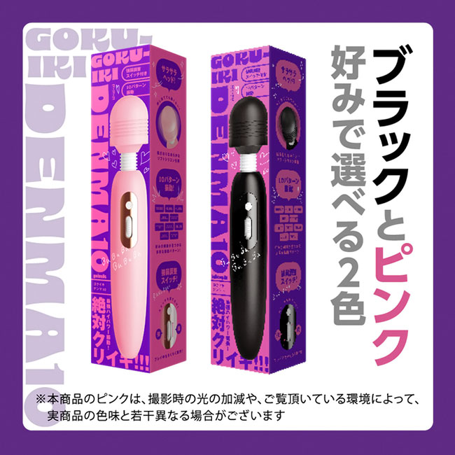 絶対クリイキ!!極イキ体験ができる超ハイパワー電マ! 10パターン振動×強弱調整スイッチ付きだから快感刺激が無限大! 回すだけの簡単調整スイッチで、好みの振動の強さを調整して自分にピッタリの刺激を見つけてください★ ヘッドは肌ざわりなめらかなソフトシリコン仕様! 押し付けても痛くないサラサラヘッドです。ワイルドブラック★ 原点にして頂点の王道デンマで極上のイキ体験 振動10パターン&生活防水IPX4等級&静音設計≦50dB&充電用USBケーブル付属。 検査番号:2304483