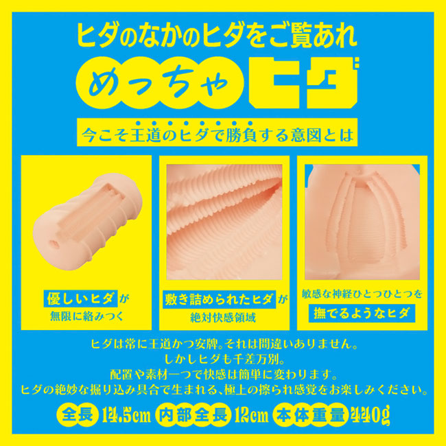 「今日はイボで刺激的に」「今日はヒダでやさしく」同じものを使い続けたいときもあれば、1日おきに違うものを使いたいときもある。そんな気まぐれに全力で応えたいです。 それがソルブメンの生まれた意味だと思いませんか?今回のテーマは「めっちゃヒダ」となります。今こそ王道のヒダで勝負する意図とは?ヒダは常に王道かつ安牌。 それは間違いないのです。しかしヒダも千差万別。配置や素材一つで快感は簡単に変わります。ヒダの絶妙な掘り込み具合で生まれる極上の擦られ感覚をお楽しみください。 あなたはオナホ選びに悩む必要はなくなります。あなたのためにソルブメンがいるのです。安心安全の日本製で繰り返し何度でも利用が可能です。