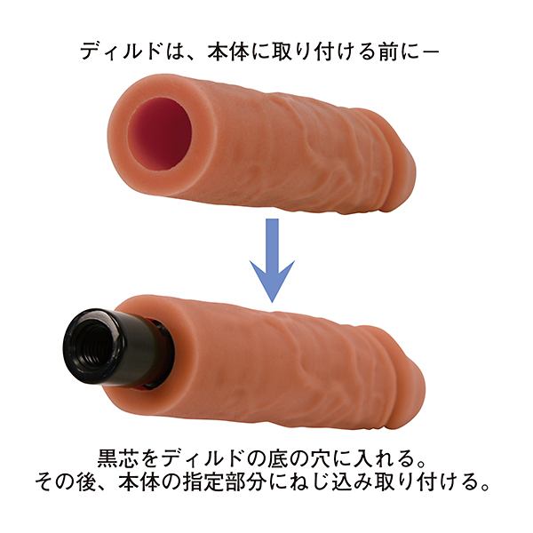 セット内容:ディルド2本、黒芯×2、ACアダプタ、ハンドル、ハンドル取付用六角レンチ、ハンドル取付けネジ×2、リモコン
